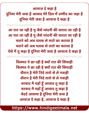 Lyrics of Aavaaz De Kahaan Hai Duniyaa Meri Javaan Hai - आवाज दे कहा है दुनिया मेरी जवा है
