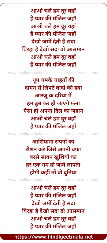 Lyrics of Aavo Chalen Dur Hum Dur Waha - आओ चले हम दूर वहाँ