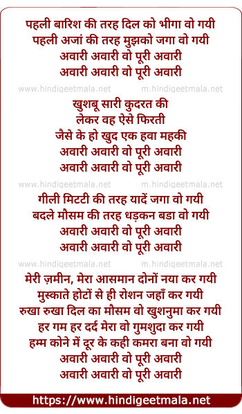 Lyrics of Aawari (Shab-2017) - अवारी (शब-२०१७)