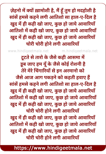 aatisho me kahi kho jaaye, kuch ho jaye aawariya