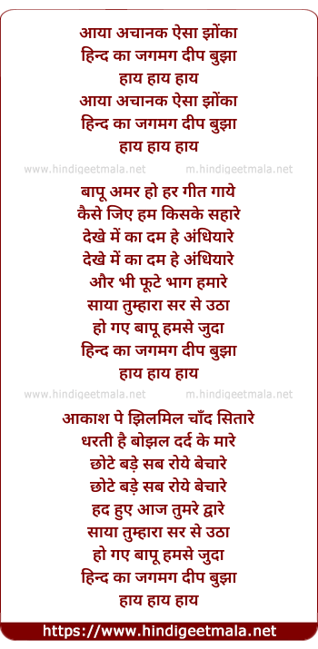 Lyrics of Aaya Achanak Aisa Jhonka - आया अचानक ऐसा झोंका