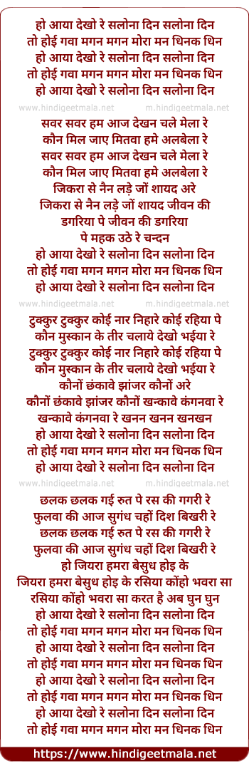 Lyrics of Ho Aaya Dekho Re Salona Din - हो आया देखो रे सलोना दिन