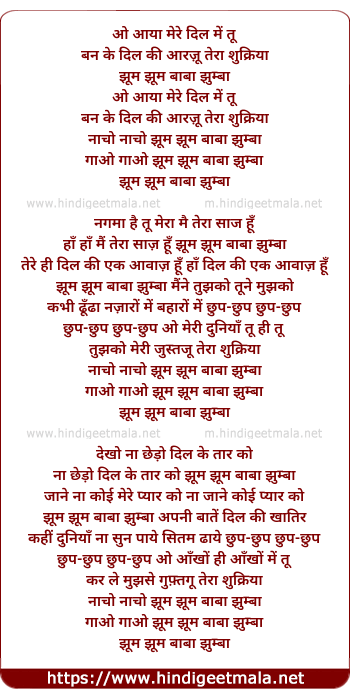 Lyrics of Aaya Mere Dil Me Tu - आया मेरे दिल में तू