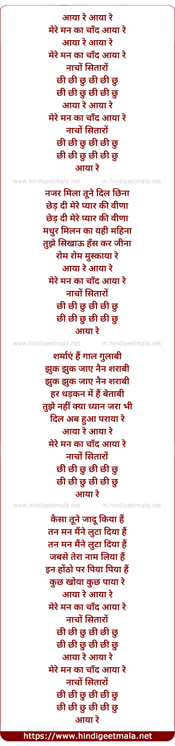 Lyrics of Aaya Re Mere Man Ka Chaand - आया रे मेरे मन का चाँद