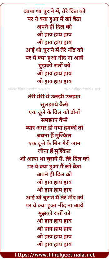 Lyrics of Aaya Tha Churaane - आया था चुराने मैं, तेरे दिल को
