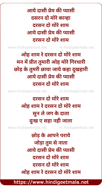 Lyrics of Aaye Dasi Prem Ki Pyasi - आये दासी प्रेम की प्यासी