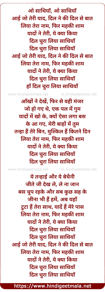 Poetic Translation - Lyrics of Aayee Jo Teree Yaad (Version 2) - ओ साथियाँ, ओ साथियाँ