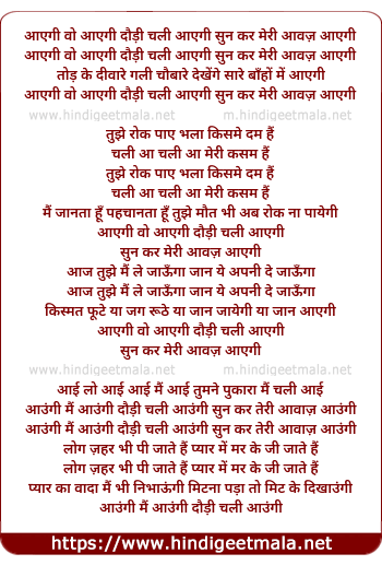 Lyrics of Aayegi Wo Aayegi Daudi Chali Aayegi - आएगी वो आएगी दौड़ी चली आएगी