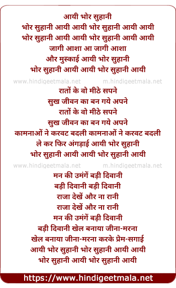 Lyrics of Aayi Bhor Suhani Aayi - आयी भोर सुहानी आई