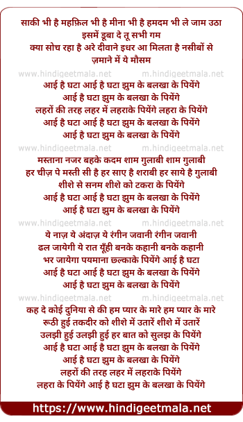 Lyrics of Aayi Hai Ghata Jhum Ke Balkha Ke Piyenge - आई है घटा झुम के बलखा के पियेंगे