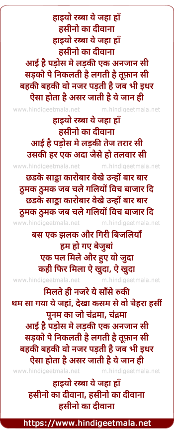 Poetic Translation - Lyrics of Aayi Hai Pados Me Ladki Tej Taraar Si - आई है पड़ोस में लड़की तेज तरार सी