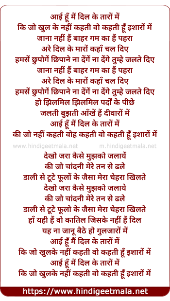 Lyrics of Aayi Hu Main Dil Ke Taron Mein - आई हूँ मैं दिल के तारों में