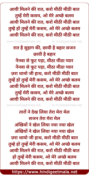 Lyrics of Aayi Milne Ki Raat - आयी मिलने की रात