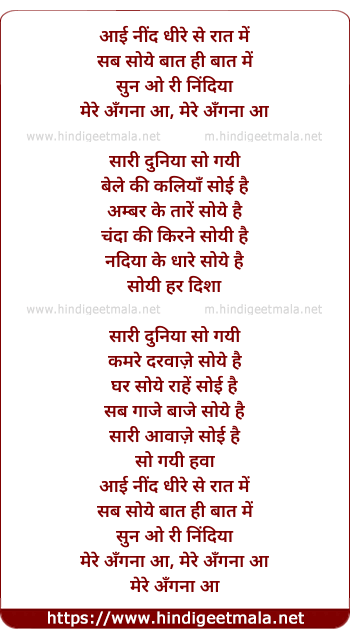Lyrics of Aayi Neend - आई नींद
