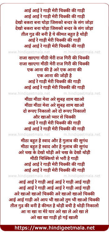 Lyrics of Aayi Re Gaadi Meri Chikki Ki Gaadi - आई रे गाड़ी मेरी चिक्की की गाड़ी