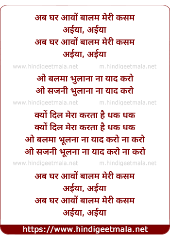 Lyrics of Ab Ghar Aao Balam Meri Kasam - अब घर आवों बालम मेरी कसम