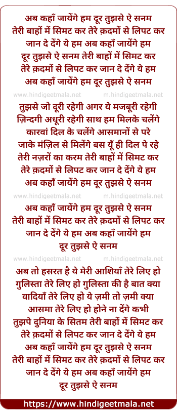 Lyrics of Ab Kahan Jayenge - Happy - अब कहाँ जायेंगे हम दूर तुझसे ऐ सनम