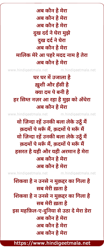 Lyrics of Ab Kaun Hai Mera - अब कौन है मेरा