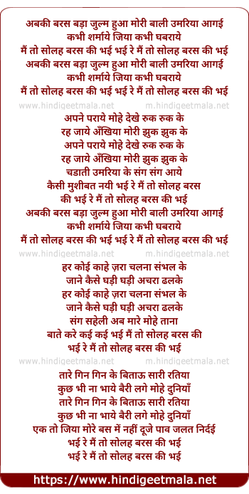 Lyrics of Ab Ki Baras Bada Julm Hua - अबकी बरस बड़ा जुल्म हुआ
