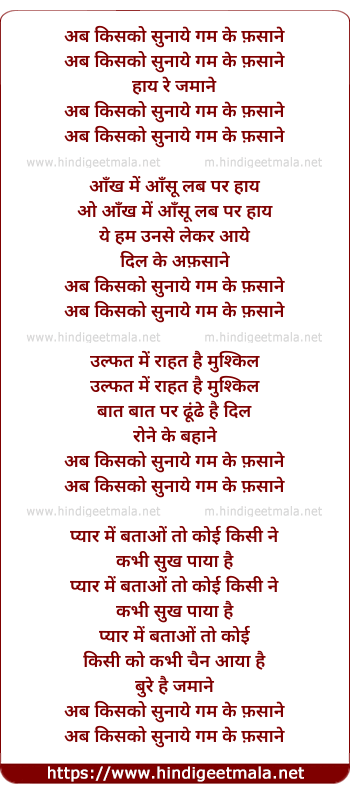 Lyrics of Ab Kisko Sunaye Gam Ke Fasane - अब किसको सुनाये गम के फ़साने