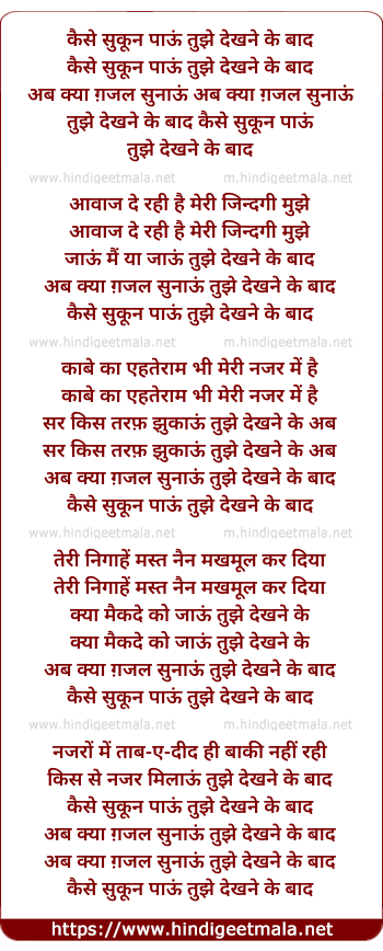 MAKHMOOR KAR DIYA KYA MAIKADE KO JAOUN , TUJHE DEKHNE KE BAAD ? NAZRON MEIN