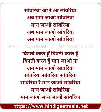 Lyrics of Ab Maan Jao Saanwariya - अब मान जाओ सांवरिया