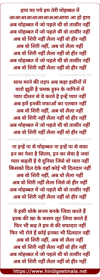 ab vo siri nahi laila nahi vo heer nahi