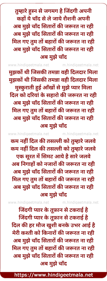 Lyrics of Ab Mujhe Chaand Sitaaro Ki Zarurat Na Rahi - अब मुझे चाँद सितारों की जरूरत ना रही