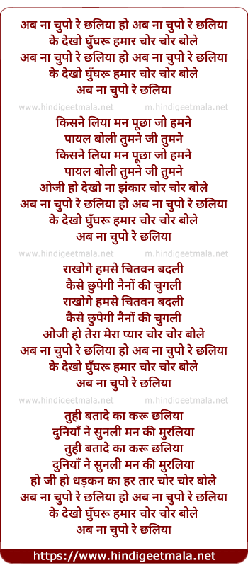 Lyrics of Ab Na Chhupo Re Chhaliya - अब ना छुपो रे छलिया