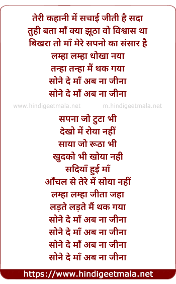Lyrics of Ab Na Jeena (Lori) - अब ना जीना (लोरी)