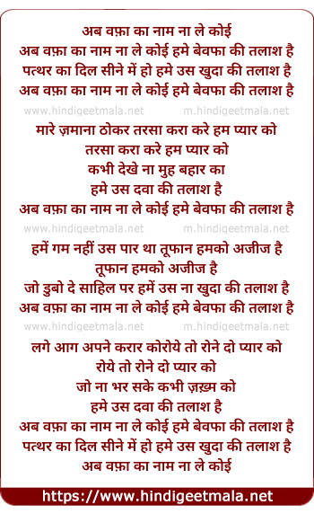 Lyrics of Ab Wafa Ka Naam Na Le Koi - अब वफ़ा का नाम ना ले कोई