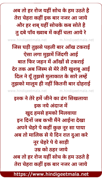 Lyrics of Abb Toh Har Roz Yahin Sochake Hum Uthate Hai - अब तो हर रोज यहीं सोच के हम उठते है