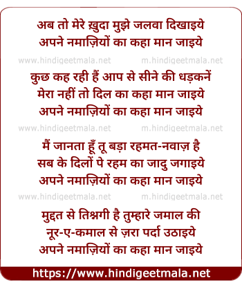 Lyrics of Abb Toh Mere Khuda Mujhe Jalawa Dikhaayiye - अब तो मेरे ख़ुदा मुझे जलवा दिखाइये