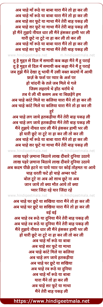 Lyrics of Ab Chaahe Maa Roothhe Ya Baaba - अब चाहे माँ रूठे या बाबा