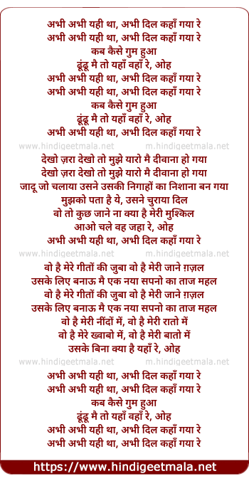 abhi abhi yahi tha, abhi dil kahan gaya re