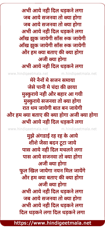 Lyrics of Abhi Aaye Nahi Dil Dhadakne Laga, Jab Aaye Sajanva To Kya Hoga - अभी आये नही दिल धड़कने लगा, जब आये सजनवा तो क्या होगा