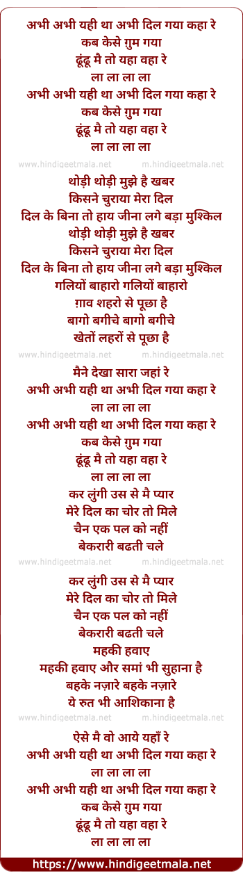 Lyrics of Abhi Abhi Yahi Tha - अभी अभी यही था