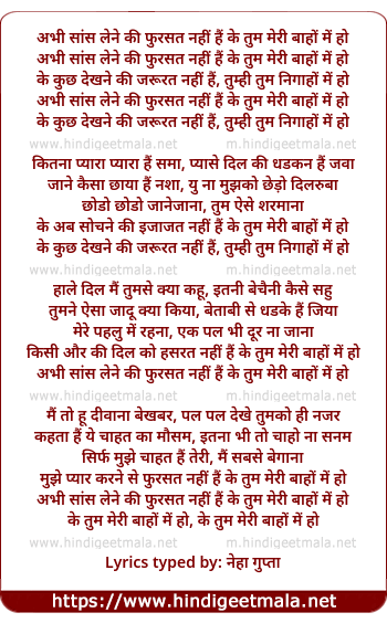 Lyrics of Abhi Sans Lene Ki Fursat Nahi Hai Ke - अभी सांस लेने की फुरसत नहीं हैं के तुम मेरी बाहों में हो