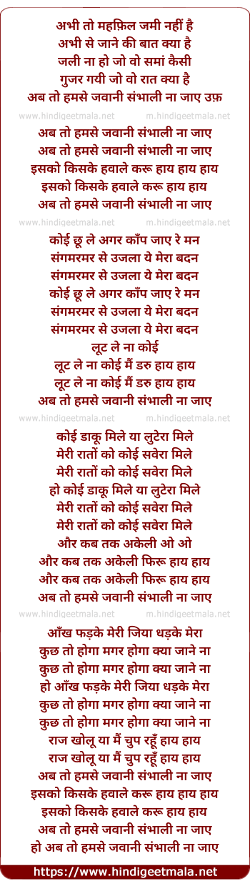 Lyrics of Abhi Toh Mehfil Jami Nahin Hai - अभी तो महफ़िल जमी नहीं है