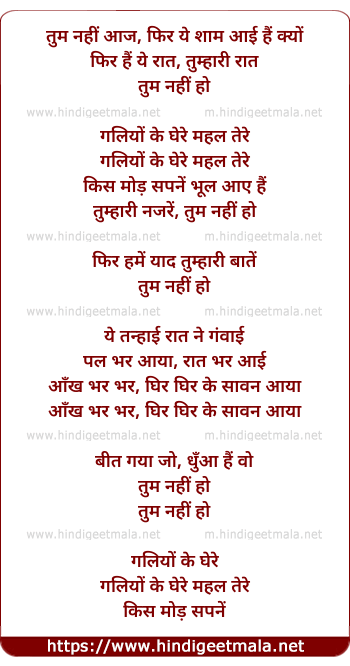 hai kyun? Phir hai yeh raat, tumhari raat, Tum nahi ho. Galiyon ke ghere
