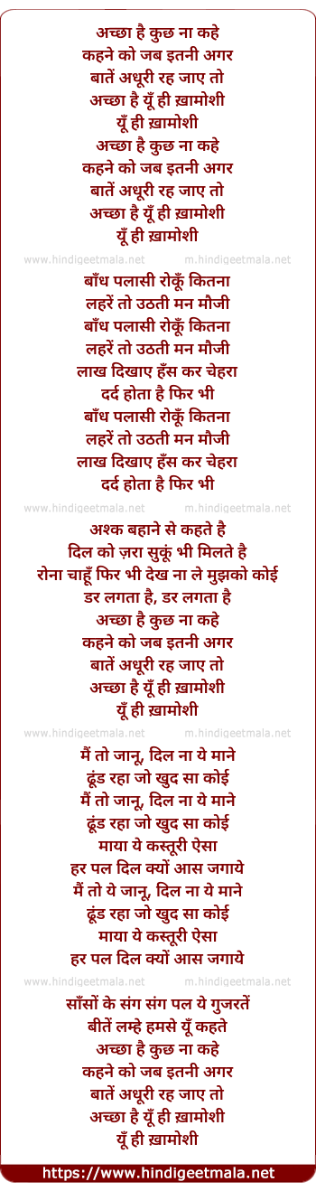 Lyrics of Achha Hai - अच्छा है कुछ ना कहे