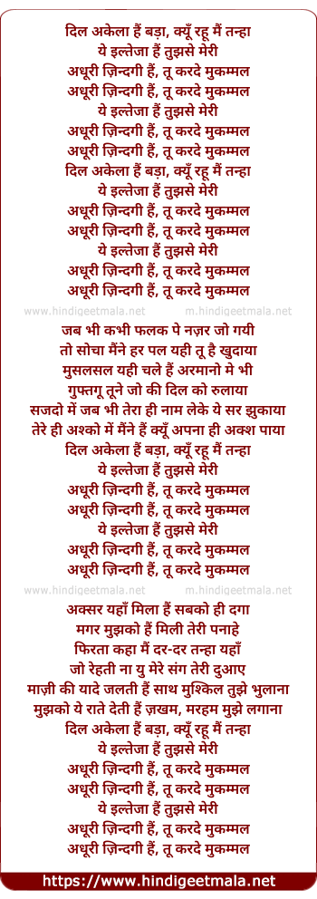 Lyrics of Adhuri Zindagi - अधूरी ज़िन्दगी