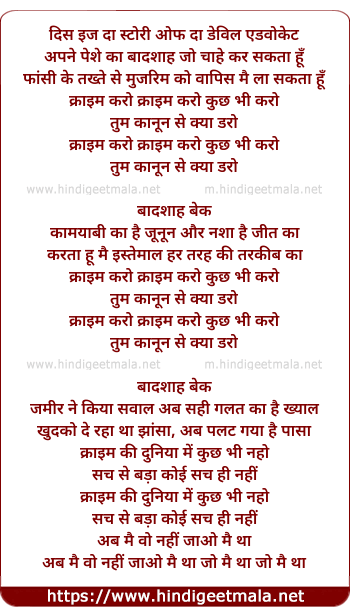 Lyrics of Crime Karo - क्राइम करो