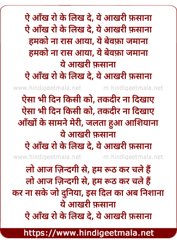 Lyrics of Ae Ankh Ro Ke Likh De - ऐ आँख रो के लिख दे