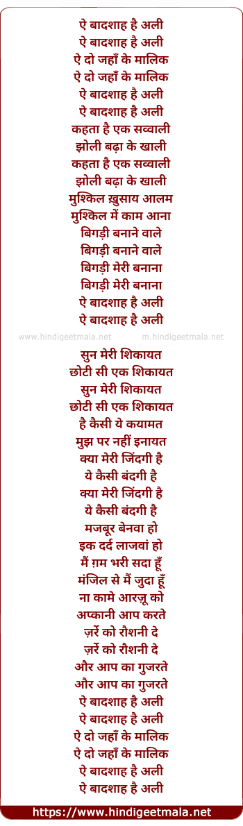 ae baadshah hai ali