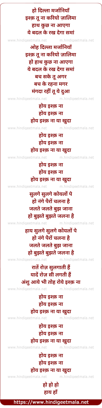 Lyrics of Ae Dilla Marjaaniyaan - ए दिल्ला मर्जानियाँ