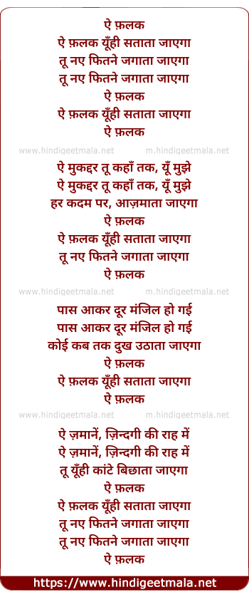 Lyrics of Ae Falak Yuhi Sathatha Jayega - ऐ फ़लक