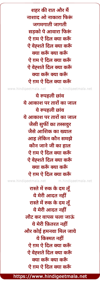 Lyrics of Ae Gham-E-Dil - ऐ ग़म ऐ दिल