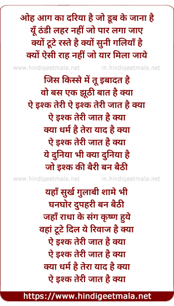 Lyrics of Ae Ishq Teri Zat Hai Kya - ऐ इश्क तेरी जात है क्या