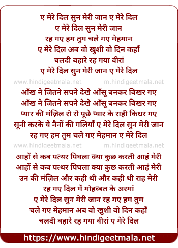 Lyrics of Ae Mere Dil Sun Meri Jan - ए मेरे दिल सुन मेरी जान